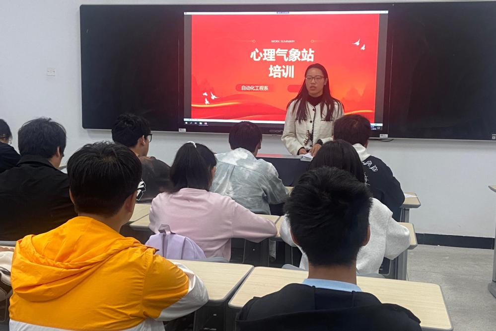 为高效推进学校“润心”行动,提高心理气象员的岗位意识和工作能力,增强工作时效性,做好学生心理危机预警,促进学生身心健康的发展,自动化工程系心理气象站站长王飞燕于10月16日在博学楼105教室开展了2024级心理委员的培训。本次培训由王飞燕主持,2023级、2024级各班心理委员参加。