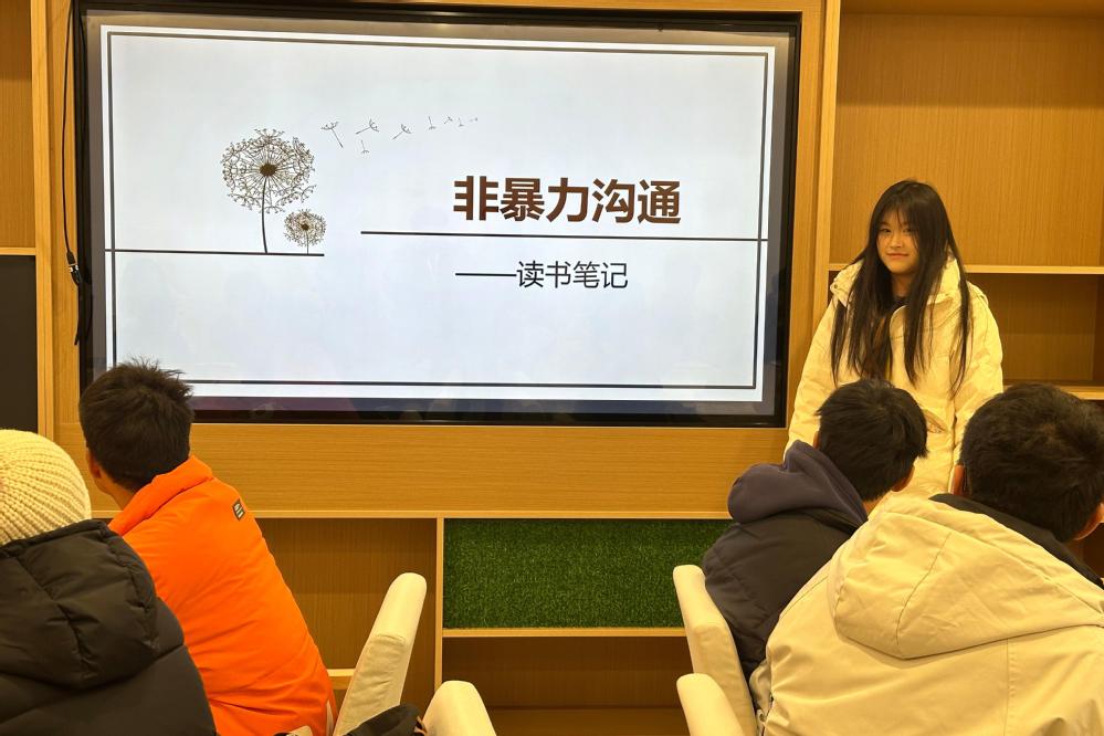 于靖欢向同学们分享了美国心理学家马歇尔·卢森堡著作《非暴力沟通》的阅读感受与体验。非暴力沟通是一种人际交往的理念和技巧,旨在建立互信、增进理解,并以和平、尊重和合作为基础。这一概念的核心源自美国心理学家马歇尔·卢森堡的著作《非暴力沟通》。马歇尔·卢森堡于20世纪60年代创立了非暴力沟通理论,并通过多年的实践与研究完善了该理论。