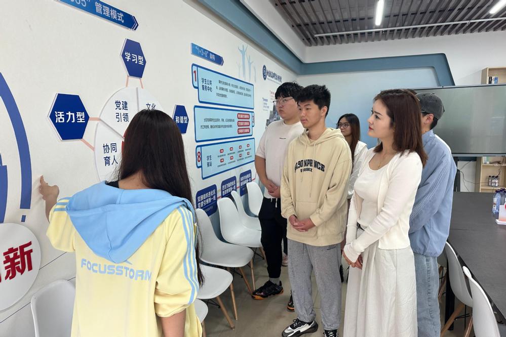 于靖欢实地参观了南京信息职业技术学院“一站式”学生社区,深入了解其功能布局与运行机制。学生骨干代表现场演示了“智慧学工”平台的操作流程,展现了大数据技术赋能精准管理的创新成果。于靖欢表示:“这种以学生需求为导向的集约化服务模式,为优化学生管理效能提供了重要参考。”