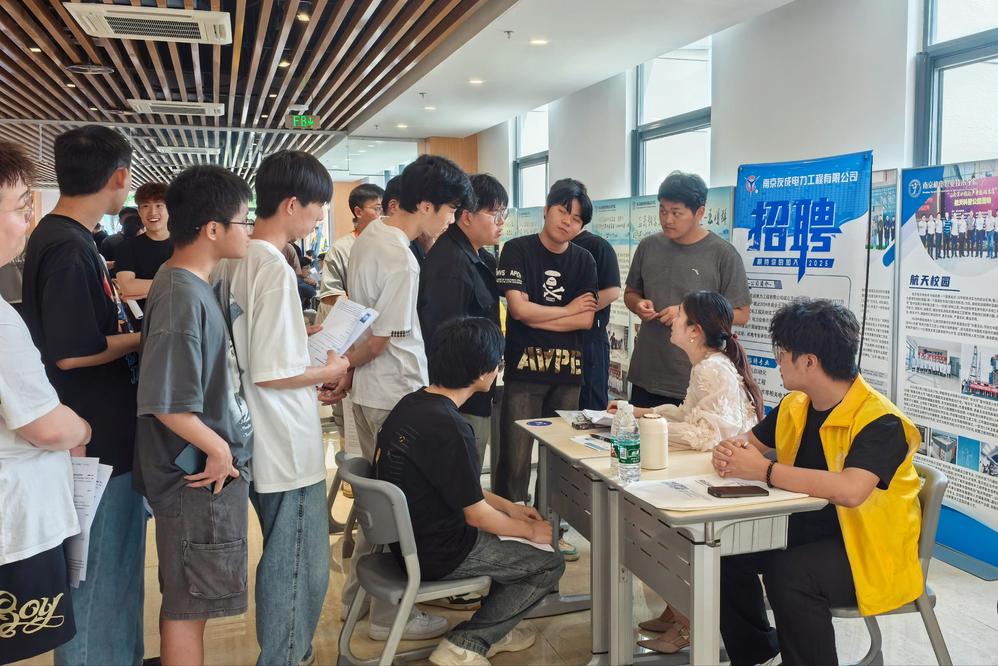 招聘会现场气氛热烈,秩序井然。上海三菱电梯有限公司江苏分公司、南京中船绿洲机器有限公司、苏文电能科技股份有限公司等来自自动化、智能制造、机器人应用、电气工程等领域的30余家优质企业提供的涵盖电气自动化技术、机电一体化技术、供用电技术、智能控制技术等专业的岗位超过500余个。岗位需求高度契合自动化工程系的专业设置,为不同兴趣和特长的毕业生提供了广阔的选择空间。