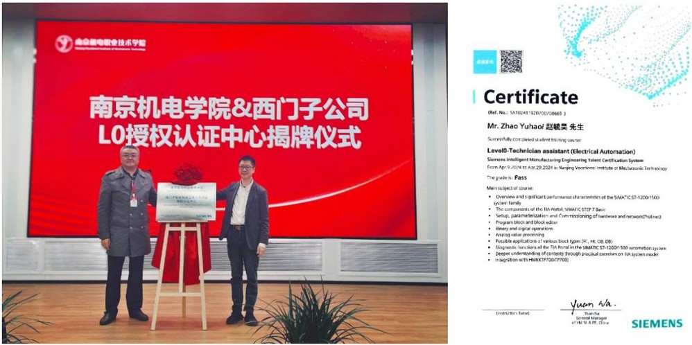 2024年3月28日,乐玩体育举行“西门子-南京机电L0授权认证中心签约揭牌仪式暨西门子L0教师认证结业仪式”,江苏省首家西门子L0授权认证中心落户学校。 至今已完成乐玩体育、江苏城市职业学院等专科院校的培训工作,有效解决了地方智能制造企业对高技能人才的需求问题,受到广泛好评。